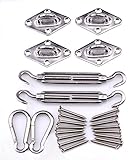 Shade&Beyond 316 Marine Grade Shade Sail Hardware Kit for Rectangle and Square Sun Shade Sail Installation , 24 Pcs Silver