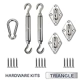 Hardware kits are recommended to install a shade sail to any structure, tree or pole. One set of triangle shade sail hardware includes: Turnbuckle x 2pcs, Pad eye x 3pcs, Snap hook x 1pcs, Screw x 12…