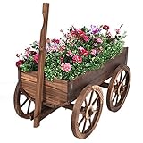 Description: Our Wooden Wagon Cart Is A Kind Garden Planter. With Its Rustic Design And Antique Look, You Will Complement Your Outdoor Décor. The Fir Wood Construction And Burn Finish Will Give You T…