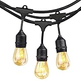 SHINE HAI 48Ft Weatherproof Outdoor String lights with 11S14 Edison Vintage Clear Bulbs-Commercial Grade-24 Hanging Sockets, Perfect for Market Cafe Bistro Patio Garden Porch Backyard Party Deck-Black